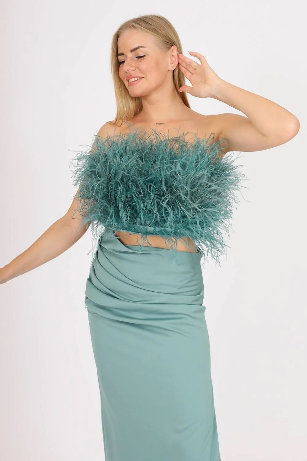 Two Piece Feather Trim Mint Dress